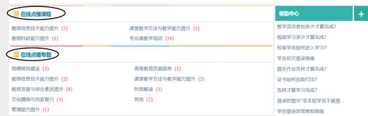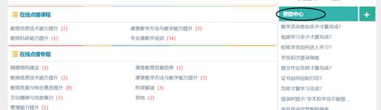 老师在学习过程中如遇到问题,可先查阅网站右侧帮助“帮助中心”,80%的问题都可以在“帮助中心”找到解决办法。