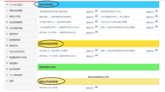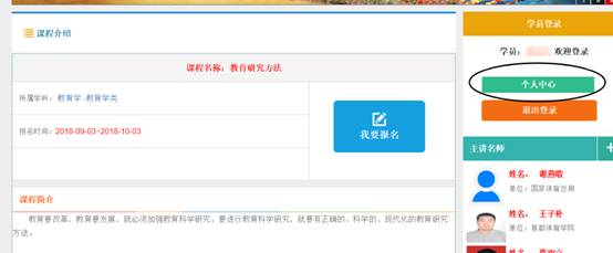 从个人中心里面可以看到自己选择的课程,并可进行学习