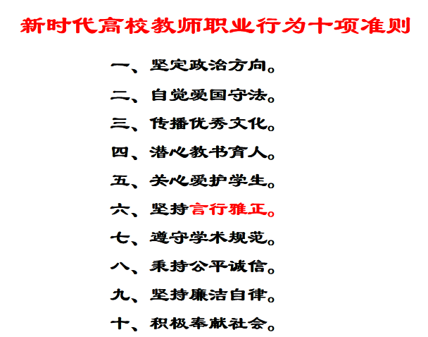 王奎指出:教育部印发《新时代高校教师职业行为十项准则》,这是新时代对广大高校教师落实立德树人根本任务提出的新的更高要求,是对习近平总书记2016年12月在全国高校思想政治工作会议上提出的“四个统一”师德师风建设的具体化,是对新时代高校教师以德立身、以德立学、以德施教,成为有理想信念、有道德情操、有扎实学识、有仁爱之心的好老师提出的具体要求。加强师德师风建设,培育一支高素质的社会主义新时代“四有”好老师队伍至关重要。各位老师要坚定政治方向,不要发表不当言论,坚持言行雅正。