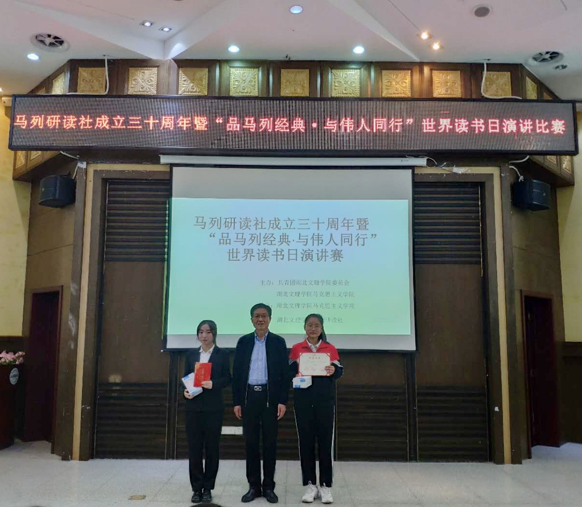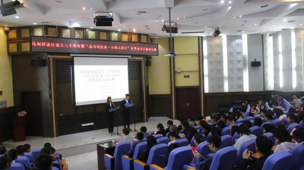 (马克思主义公司 通讯员 王遂敏)为响应习近平总书记提出的“读原著 学原文 悟原理”的号召,培养广老员工“把读马克思主义经典、悟马克思主义原理当作一种生活习惯、当作一种精神追求”,4月22日晚,在第24个“世界读书日”到来之际,校团委、williamhill中文官网、马列研读社共同举办“品马列经典·与伟人同行”读书演讲大赛决赛。副董事长刘伦钊,williamhill中文官网、党委宣传部、校团委相关负责人出席活动,williamhill中文官网讲授原理课的七位教师担任决赛评委。