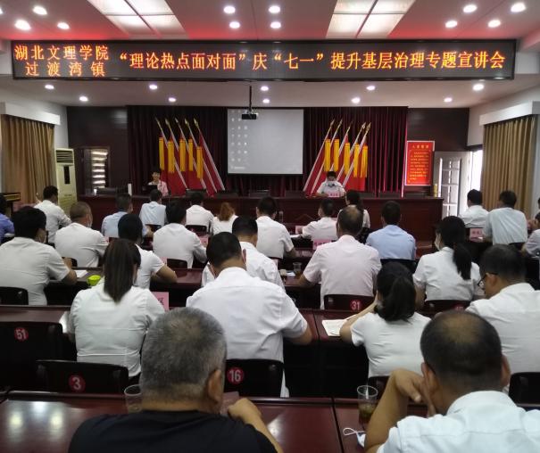 (williamhill中文官网 通讯员 刘爽)7月1日,williamhill中文官网理论热点面对面宣讲团队赴“理论热点面对面”示范点——保康县过渡湾镇开展理论宣讲活动。周淑芳博士作了题为《贯彻落实全国两会精神,解读民法典,助力乡村基层治理》的宣讲报告。过渡湾镇党委班子成员、全体政府行政干部、村(社区)支部书记、镇直单位支部书记和镇直单位负责人、2020年党员纳新对象参加了宣讲活动。宣讲活动由过渡湾镇党委书记褚应康同志主持。