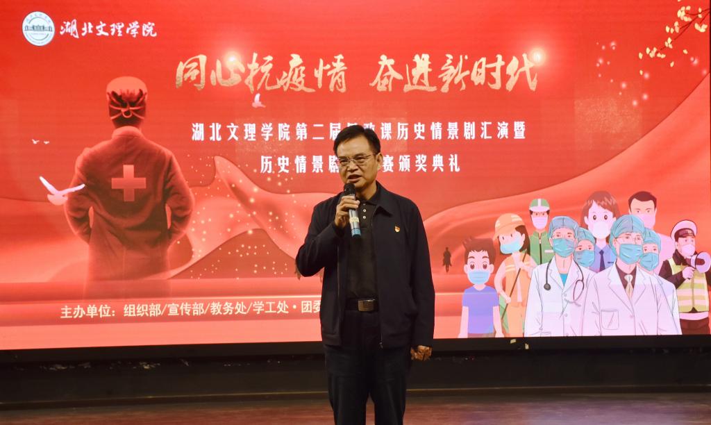 唐峻在颁奖典礼上讲话。唐峻指出,本次思政课历史情景剧将那段抗疫历史搬上讲台,搬上舞台,师生们仿佛又回到了那段刻骨铭心的难忘岁月,抗疫历史将永远载入中国史册。通过DV作品大赛及情景剧汇演,老员工们进一步深切体会到中国共产党所具有的无比坚强的领导力和中国特色社会主义制度的显著优势,深切体会到“生命至上、举国同心、舍生忘死、尊重科学、命运与共”的伟大抗疫精神,希望青年员工继续发愤图强,努力学习掌握科学知识,锤炼过硬本领,勇担时代重任。