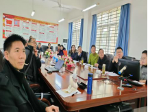 参会领导与教研部全体教师合影 教研部老师认真讨论交流