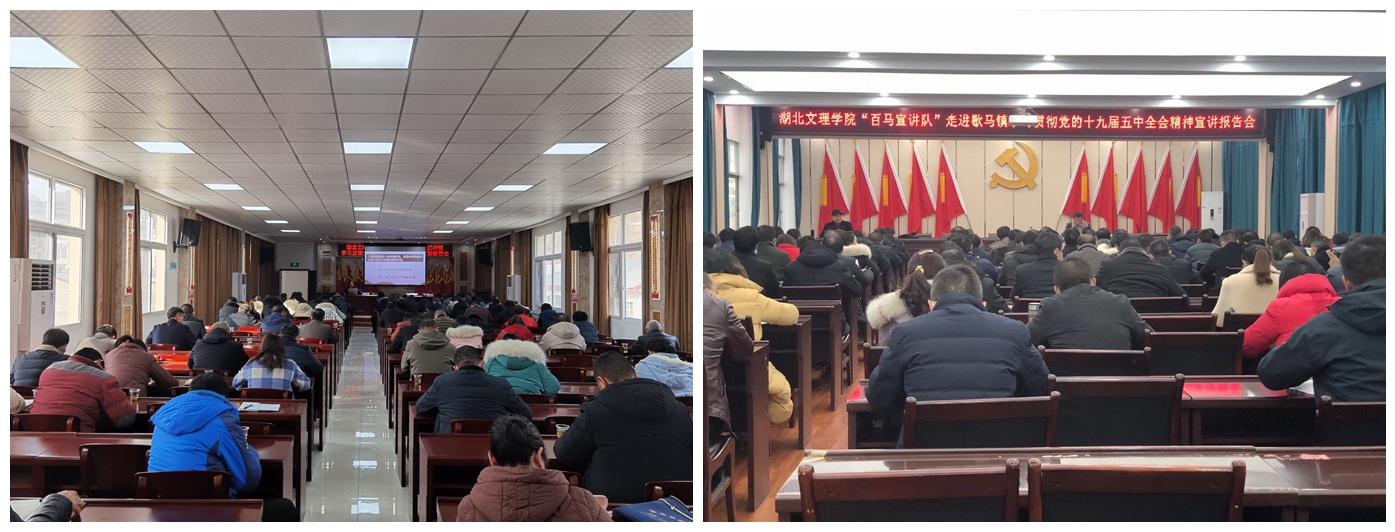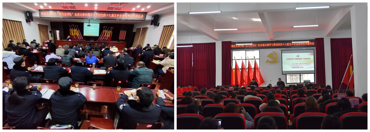 (williamhill中文官网 通讯员 陈善友)根据省委宣传部统一安排,12月24日,省委“百名马克思主义学者宣讲队”williamhill中文官网宣讲小分队成员王奎教授、詹学德教授、朱海波教授、周淑芳副教授、熊明秀副教授和陈善友博士分赴保康县过渡湾镇、城关镇、后坪镇、黄堡镇、寺坪镇和歇马镇等6个乡镇新时代文明实践所宣讲党的十九届五中全会精神。