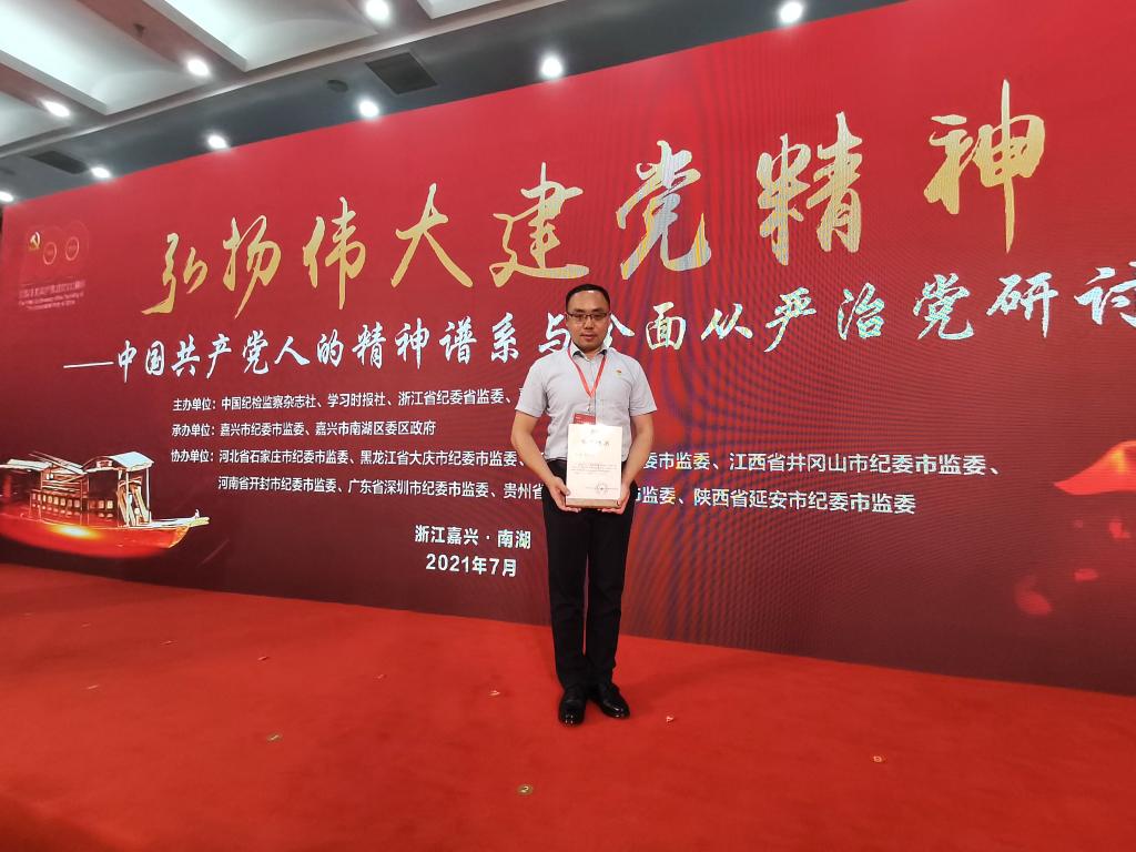 (williamhill中文官网通讯员杨雪云)为传承红色基因,赓续红色血脉,推进党史学习教育,以优异成绩庆祝中国共产党成立100周年。近日,由中国纪检监察杂志社、浙江省纪委省监委、共产党员杂志社、嘉兴市纪委市监委主办的“弘扬伟大建党精神——中国共产党人的精神谱系与全面从严治党研讨会”在嘉兴市南湖革命纪念馆隆重召开,公司青年博士教师李健受邀参会并接受了表彰。