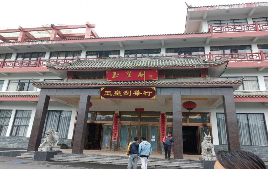 按照提前规划好的行程安排,实践团队于上午最先抵达玉皇山庄,在负责人赵春丽的带领和讲解下学习玉皇剑茶叶的发展及其文化背景,这里还有一个位于五山镇天河村的万亩有机茶园,在以田河茶场为基本布局的田园房舍内,具备茶坛、林间茶道、茶园、树林等园林设施,发达的茶产业也为周边农户提供了一些就业机会;同学们在此了解到玉皇剑茶名称的由来,从古代神话传说到现代红色文化发展,玉皇剑茶叶有限公司的经营理念与方式都值得同学们学习和借鉴。