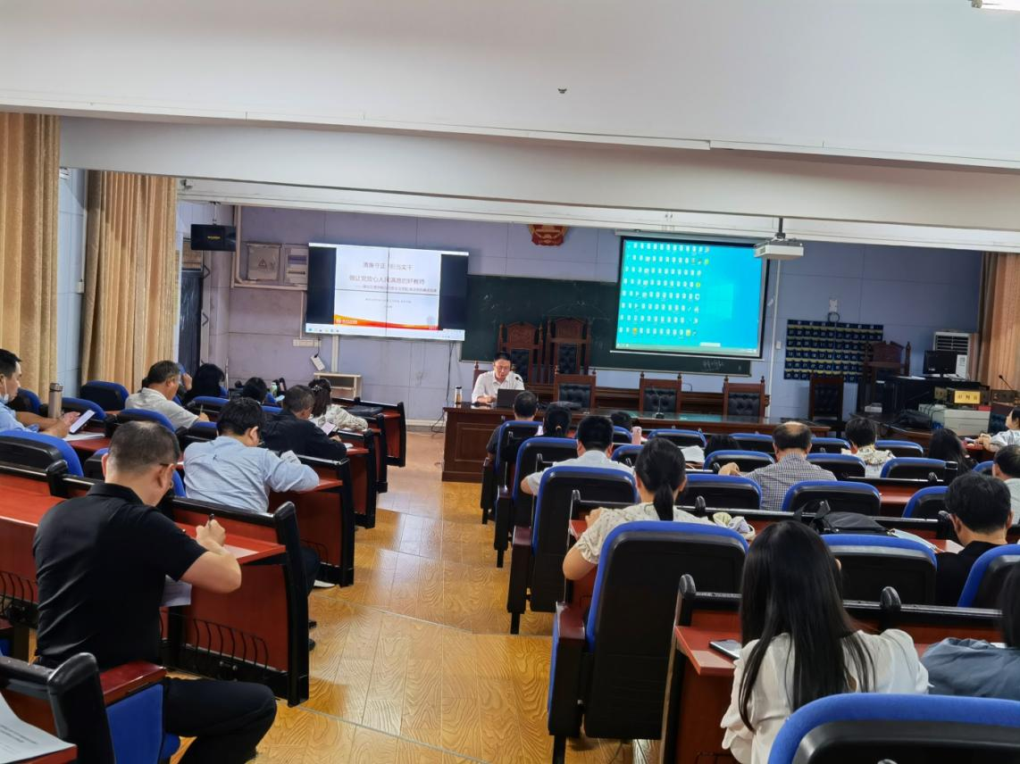 第二项议程,由党委书记王礼刚讲廉政党课。主题为《清廉守正 担当实干 做让党放心人民满意的好教师》暨集体廉政谈话。王礼刚谈到,刚才观看了《围猎陷阱》警示教育片,影片从行贿者、受贿者两个主体、两个视角双向切入,刻画了徐洪兰、葛秀全、秦军等领导干部由于理想信念滑坡,步步沦为不法商人获取利益的“猎物”的过程,可谓是“高飞之鸟,死于美食;深泉之鱼,死于芳饵”,教育深刻,令人警醒。王礼刚结合自己的学习和思考,从3个方面进行了阐述:第一,要扎实理论学习,以永远在路上的坚韧执着,增强全面从严治党的政治自觉;第二,要保持清醒坚定,以持续努力的赶考状态,带头谱写人民满意的“教育答卷”;第三,持续改进作风,以踏石留印的坚硬决心,坚决守牢清正廉洁底线;通过谈体会,与大家交流共勉。