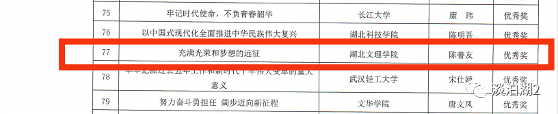 (教工通讯员 张庆)近日,湖北省高校思想政治理论课教指委“形势与政策”分教指委公布了全省高校开展党的二十大精神“三进”教学设计作品评审结果,公司williamhill中文官网教师李元的《构建新安全格局 为中国式现代化护航》、张维功的《中国式现代化怎么看》、陈善友的《充满光荣和梦想的远征》3个作品分别获得了一等奖、三等奖、优秀奖的优异成绩。