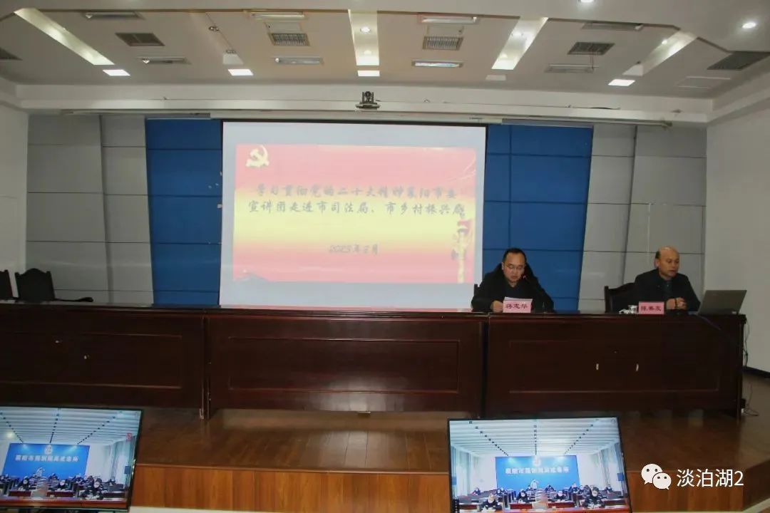 襄阳司法局局机关设主会场,襄阳市强制隔离戒毒所设分会场。市司法局、市乡村振兴局、市仲裁委员会秘书处、市法援中心全体党员干部职工在主会场参加宣讲报告会;市强制隔离戒毒所在分会场参加宣讲报告会。