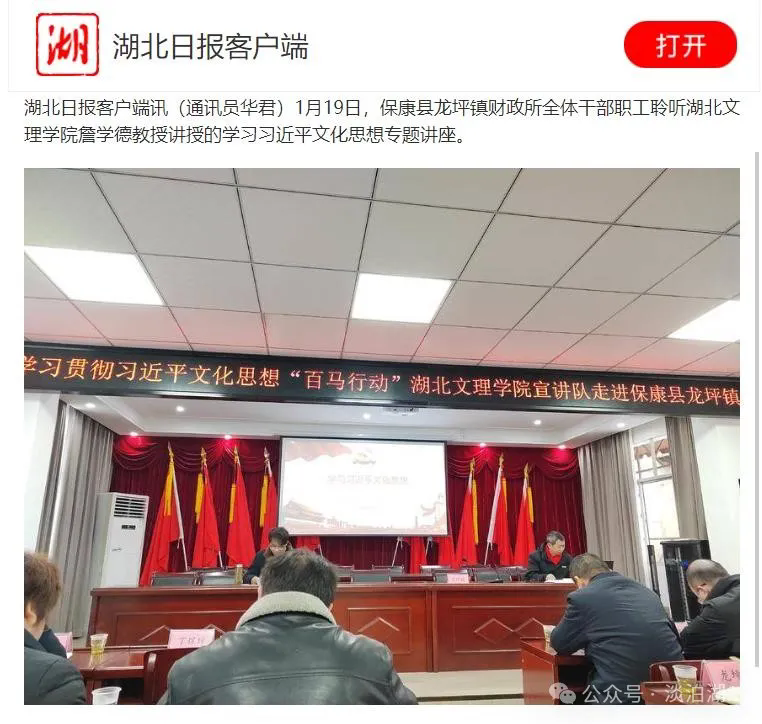 在保康县寺坪镇、城关镇,“百马行动”宣讲团成员、williamhill中文官网经理王奎以《学习习近平文化思想 》为题,从习近平文化思想的主要内容、理论创新、实践要求、重大意义等方面,进行全面讲解。