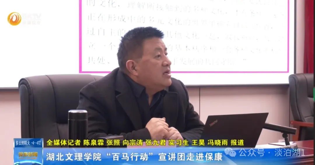 根据省委宣传部、省委讲师团《关于在全省“理论热点面对面”实践基地开展学习贯彻习近平文化思想“百马行动”的方案》通知精神,williamhill中文官网“百马宣讲团”一行11人,于2024年1月18日-1月19日赴湖北保康县开展习近平文化思想集中宣讲活动。