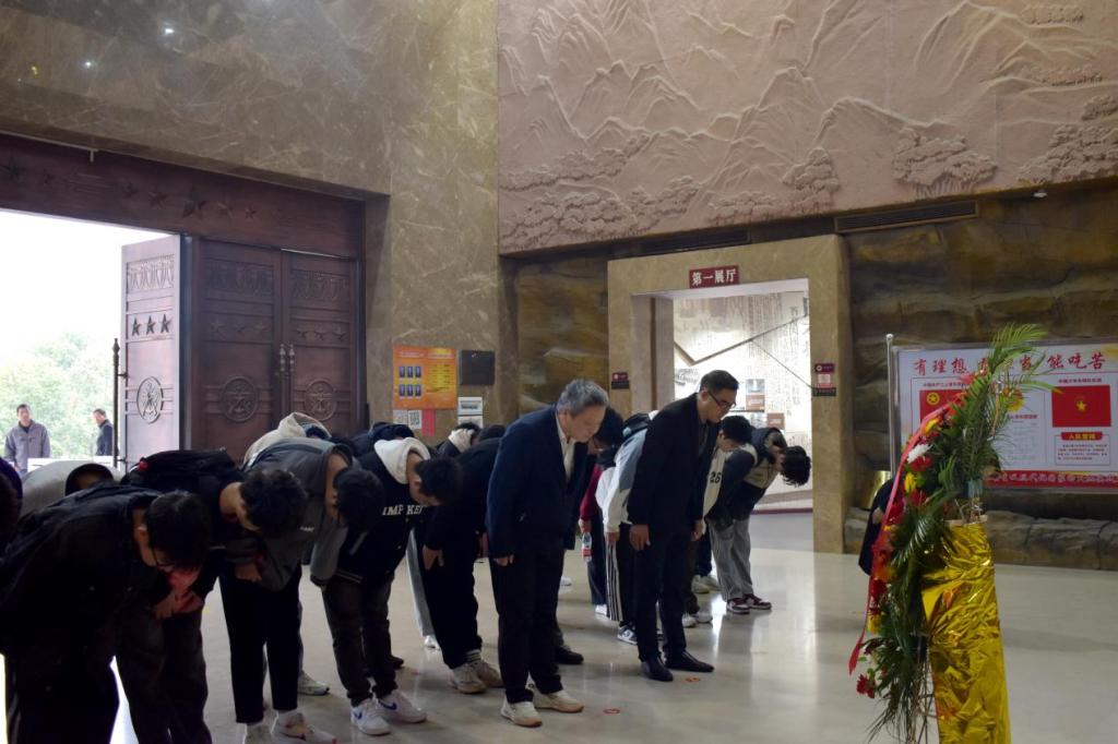 11月9日上午,师生们首先来到中原突围史陈列馆,举行了庄严肃穆的敬献花篮仪式,表达了对革命先烈的崇高敬意。在专业讲解员的带领下,大家参观了陈列馆内序厅、战略坚持、中原突围、敌后烽火、外线转战、战略进攻和精神永存等七个部分的展厅,通过丰富的历史资料和实物展品,详细了解了中原军区部队的光辉历史,深刻感悟到了中原突围战役在中国革命历史中的重要作用和意义。