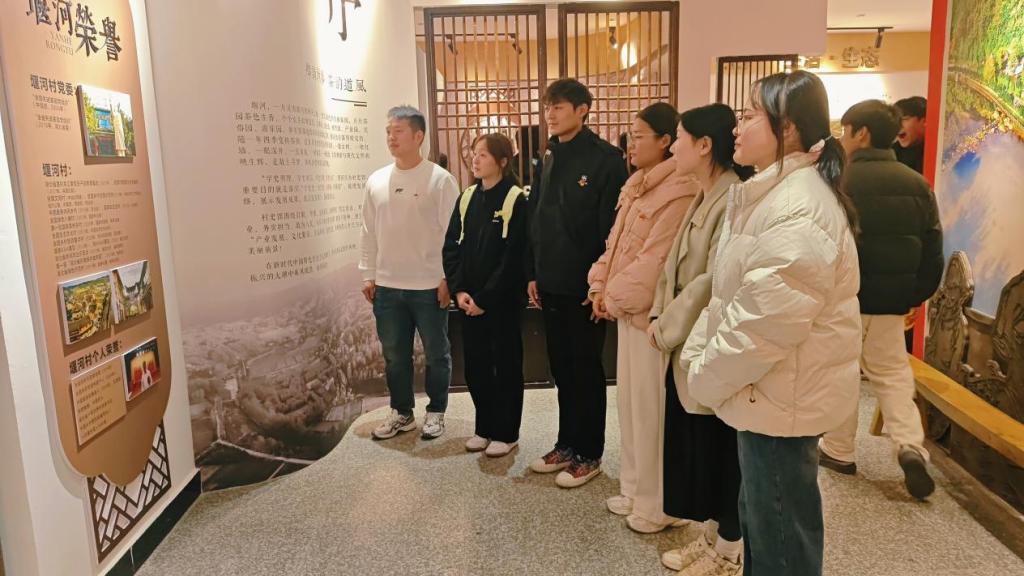 在五山镇堰河村党群服务中心,师生学习感悟乡村振兴和“咬定青山、艰苦创业、务实担当、敢闯敢干、小车不倒往前推”的堰河精神,从中汲取奋进力量。师生们还参观了堰河村民俗园、垃圾分类中心、天艺茶庄及茶叶加工厂、生态茶园基地,还集中参观了堰河村史馆,了解堰河村的奋斗历程,感悟堰河村几十年来发生的翻天覆地的变化。