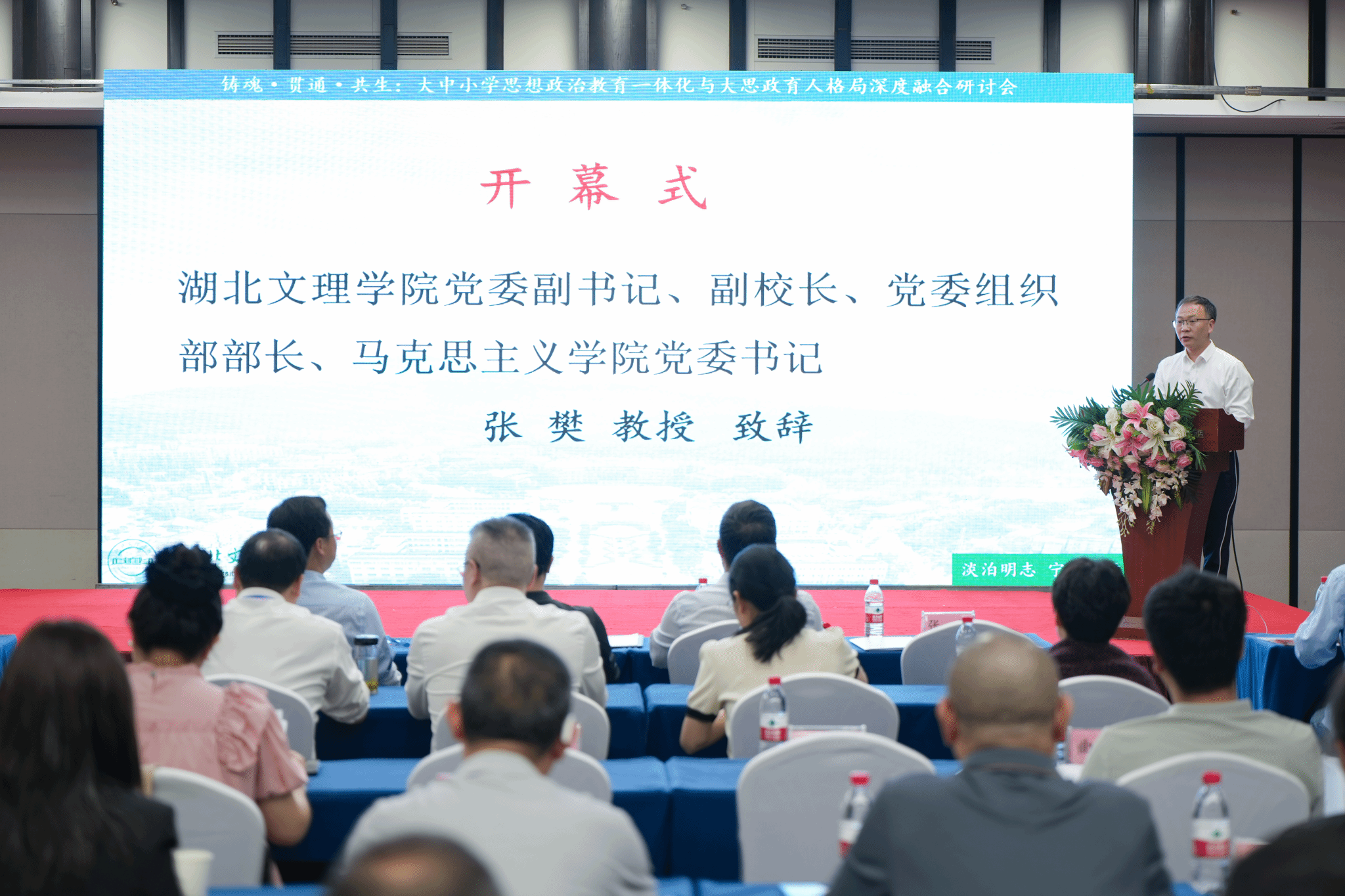 会议分为开幕式、主旨报告和经验交流三个环节,开幕式由湖北文理公司党委宣传部常务副部长王礼刚教授主持,湖北文理公司党委副书记、副董事长、党委组织部部长、公司党委书记张樊致辞。张樊强调,公司高度重视williamhill中文官网建设和大中小思想政治一体化工作,公司着力将williamhill中文官网打造成学习研究宣传马克思主义理论的主阵地,把思想政治理论课作为用党的创新理论铸魂育人的主渠道,为推进大中小学思政课一体化共同体建设贡献积极力量。