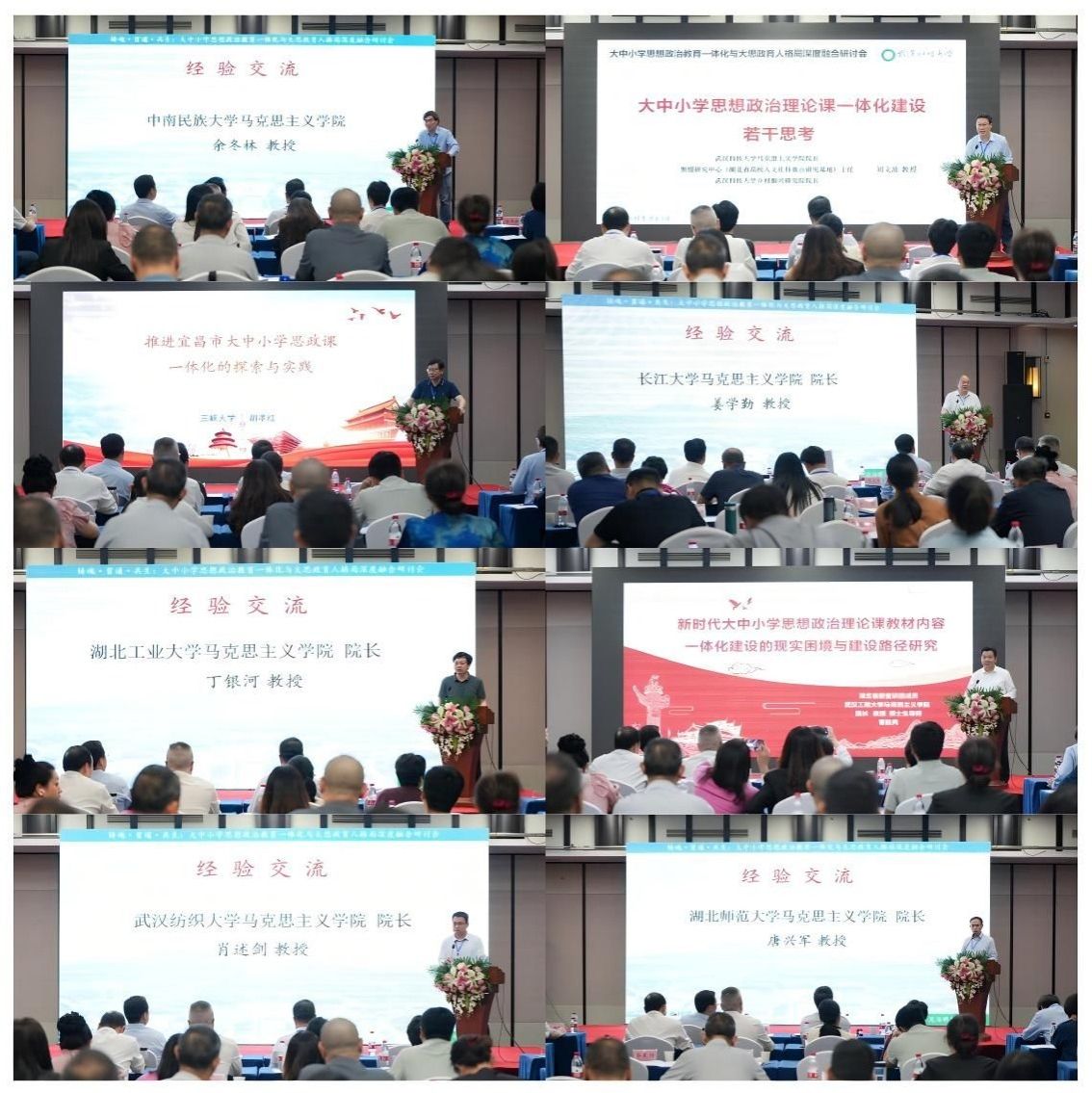 经验交流环节分别由williamhill中文官网经理王奎教授、副经理李双胜教授主持。与会代表围绕会议主题,结合校本资源和地域特色,分享了构建大思政育人格局的典型案例,聚焦破解“大思政课”的认识误区、williamhill中文官网建设的定位、大中小学思政课教学内容的资源整合、大中小学思政课教材的系统设计、大中小学思政课团队力量的分段建设、大中小学思政课教学方式的改革创新等方面,深入交流当前进展、现实瓶颈与突破路径,现场互动热烈,学术氛围浓厚。