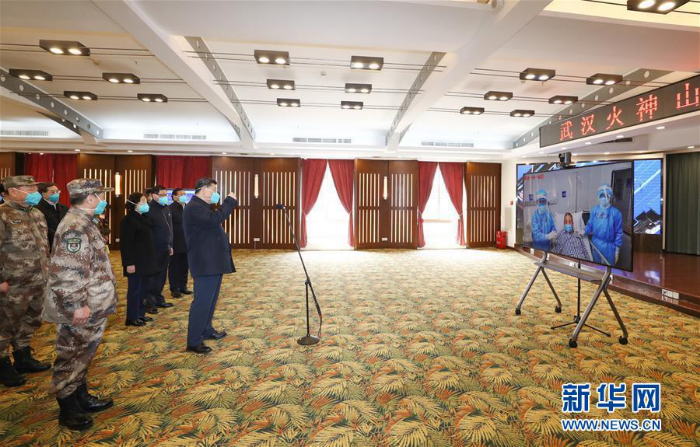在火神山医院指挥中心,习近平听取医院建设运行、患者收治、医务人员防护保障、科研攻关等情况介绍。习近平指出,疫情发生以来,包括军队在内的广大医务工作者发扬特别能吃苦、特别能战斗的精神,义无反顾奔赴湖北和武汉,毫无畏惧投入防控救治工作,日夜奋战,舍生忘死,不负重托,不辱使命,同时间赛跑,与病魔较量,为武汉疫情防控工作作出了重要贡献。军队医务人员牢记我军宗旨,召之即来,来之能战,战之能胜,为党旗、军旗增添了光彩。沧海横流,方显英雄本色。你们真正做到了救死扶伤、大爱无疆。你们是光明的使者、希望的使者,是最美的天使,是真正的英雄!党和人民感谢你们!