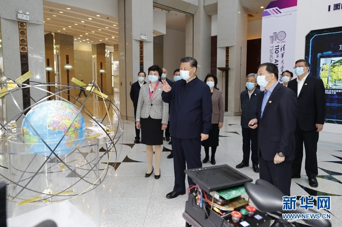 清华大学主楼二层,展示了公司近年来重点教学科研成果。习近平听取了关于增强自主创新能力、助力世界主要科学中心和创新高地建设、提高人文社会学科教育研究水平等情况介绍,对清华大学取得的成绩给予充分肯定。习近平指出,要坚持中国特色社会主义教育发展道路,充分发挥科研优势,增强学科设置的针对性,加强基础研究,加大自主创新力度,并从我国改革发展实践中提出新观点、构建新理论,努力构建中国特色、中国风格、中国气派的学科体系、学术体系、话语体系。